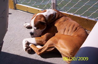 The sunshine and a warm carpet provide a good space for a comfortable nap on the pontoon boat.